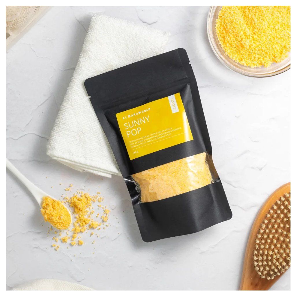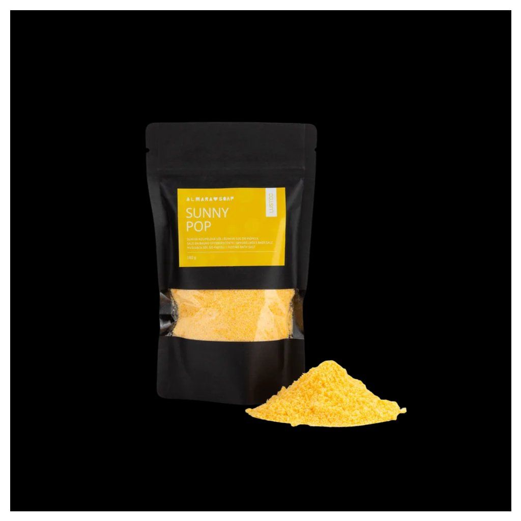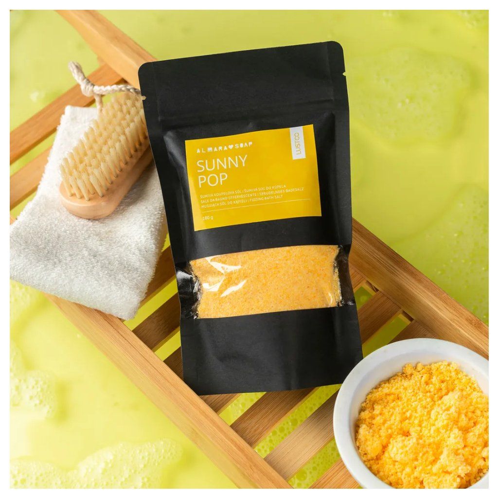 Koupelový prach Sunny Pop Vás dostane svěží letní vůní citrusové limonády, krásnou barevnou pěnou a svým hravým šuměním. To vše bez toho, aby ušpinil Vaši vanu.
