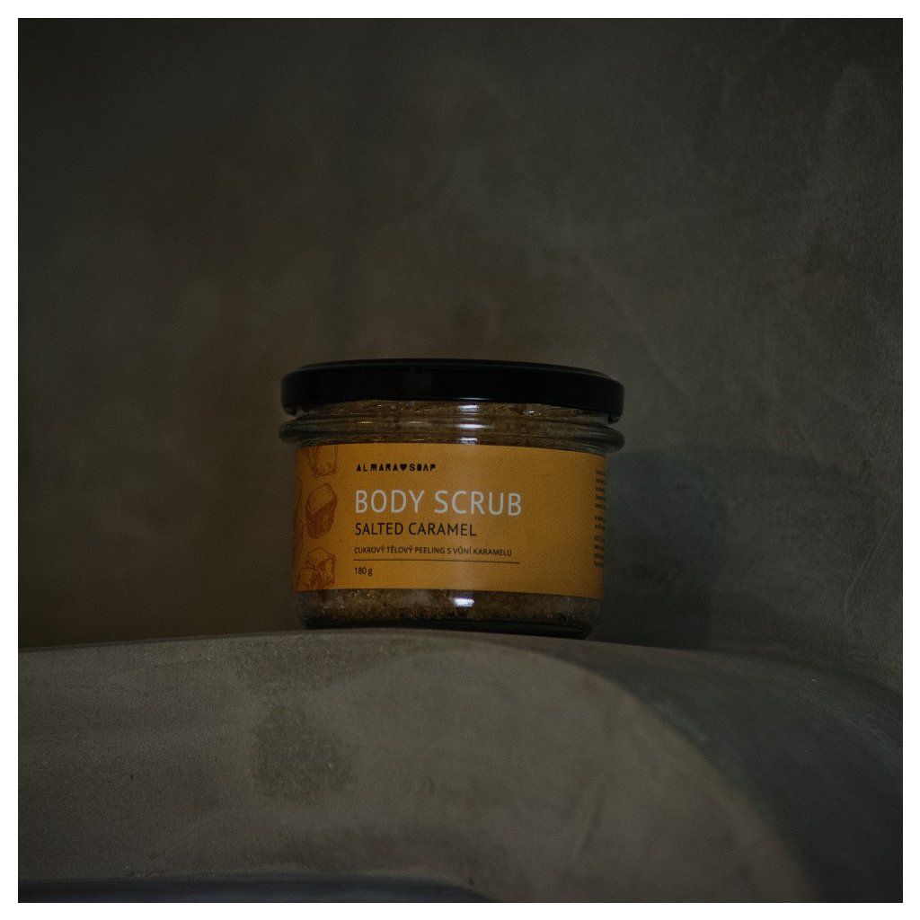 tmavý třtinový cukr, mořská sůl, slunečnicový olej, ricinový olej LZS, parfém